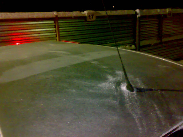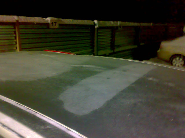 Вот так вглядела крыша снаружи в -25, когда салон холодный, а под обшивкой потолка был конденсат: